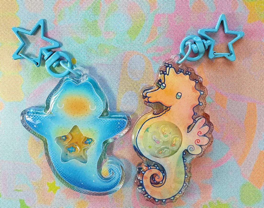 I started drawing with copics when I was 12 and have slowly gained 100+ more hobbies overtime! I now dabble in resin, beading, clay art, pottery painting, 3D art and digital art! I fear my curiosity and eagerness to create as much as I can has made me quite the hoarding artist. I really love meeting new friends, especially at markets! You'll always find me smiling desperately at you behind my little table, analysing your interests.. lovingly.